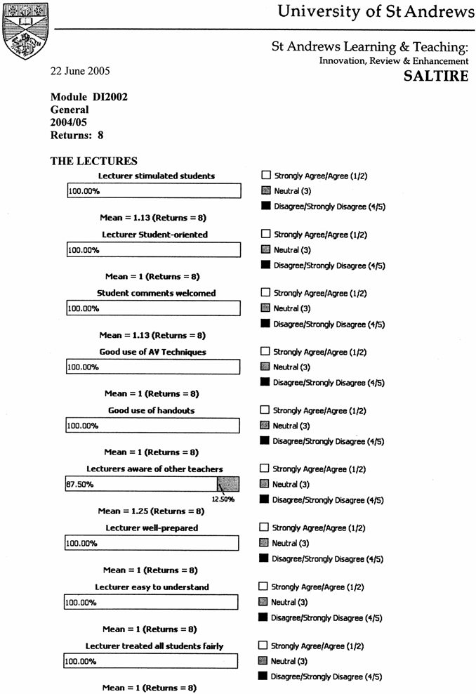 eight Module Evaluation Forms (a total of 240 questions), Mr. Blakley